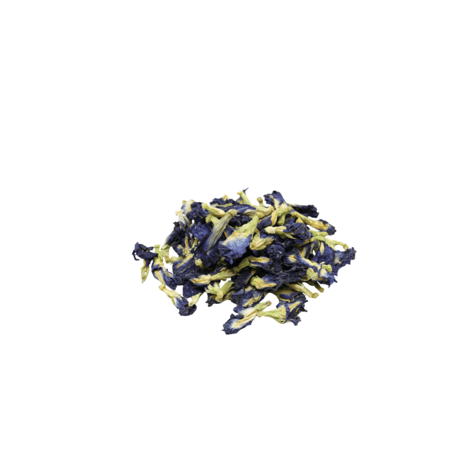 פרחי אפונת הפרפר (תה כחול) - butterfly pea, משתמשים לחליטת תה בגוון כחול המשנה את צבעו לסגול בהיר במגע עם מחמיץ/לימון.