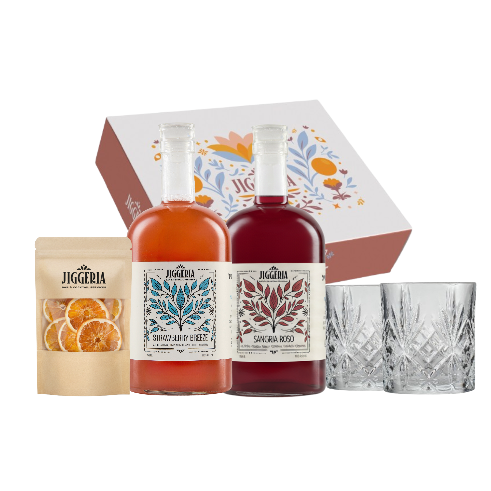 קוקטייל סנגריה רוסו 700 מ"ל משפחתי- יין אדום, אלכוהול, הדרים ותבלינים משוק לוינסקי. קוקטייל סטרוברי בריז 7000 מ"ל משפחתי- יין לבן מתובל, אלכוהול, קורדיאל פירות יער ותותים עם בלסמי מצומצם ועלי דפנה.