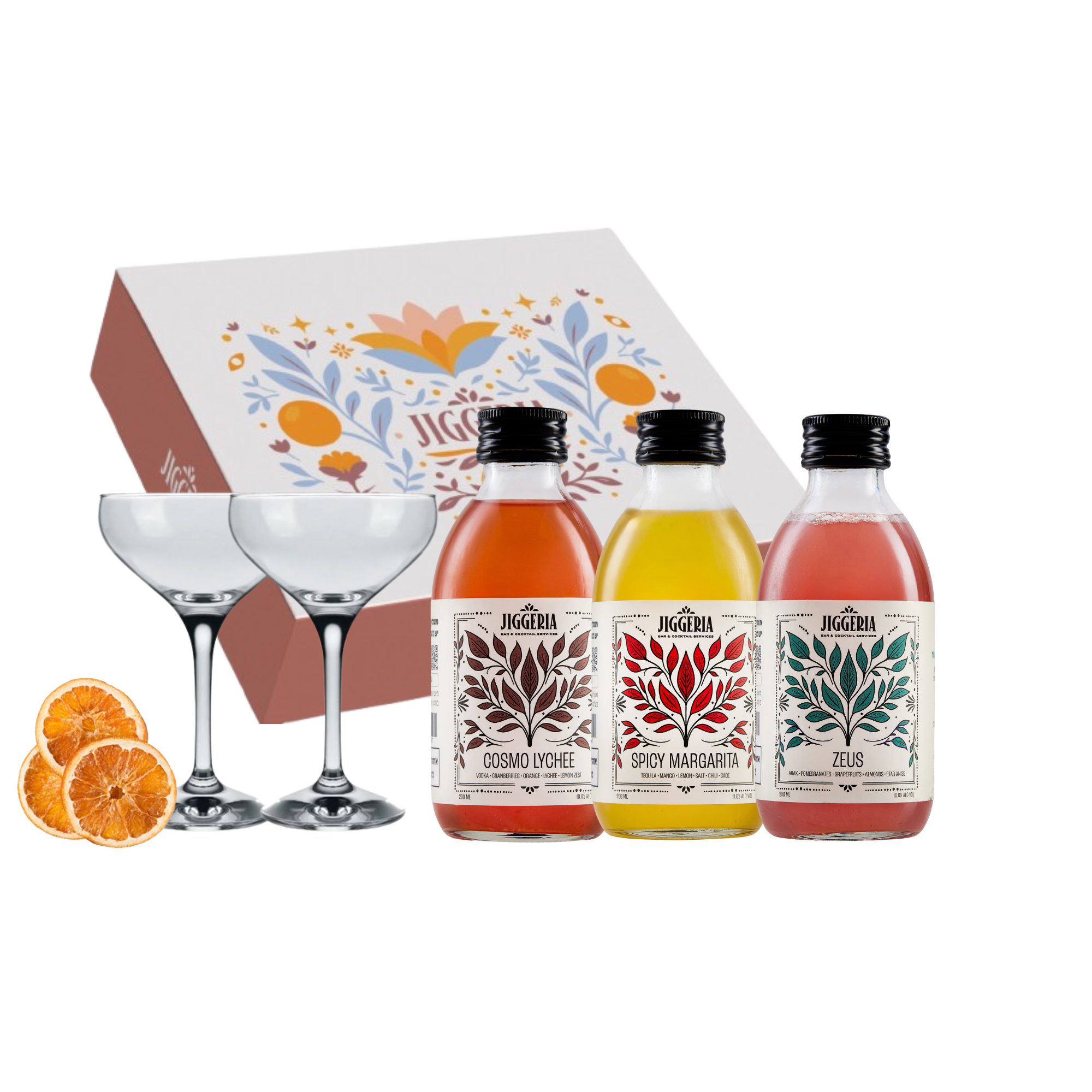 מארז קוקטיילים בתוספת זוג כוסות קופ אלגנטיות: