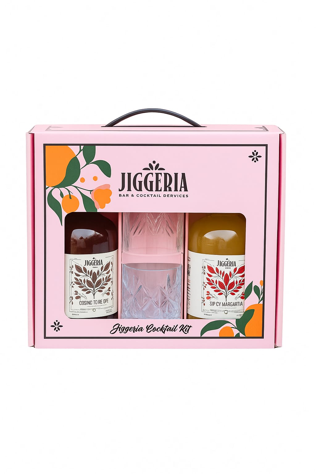 זוג קוקטיילים 700 מ"ל בטעמים ספייסי מרגריטה וקוסמוליצ'י בתוספת זוג כוסות קוקטייל מונלייט לואובול.