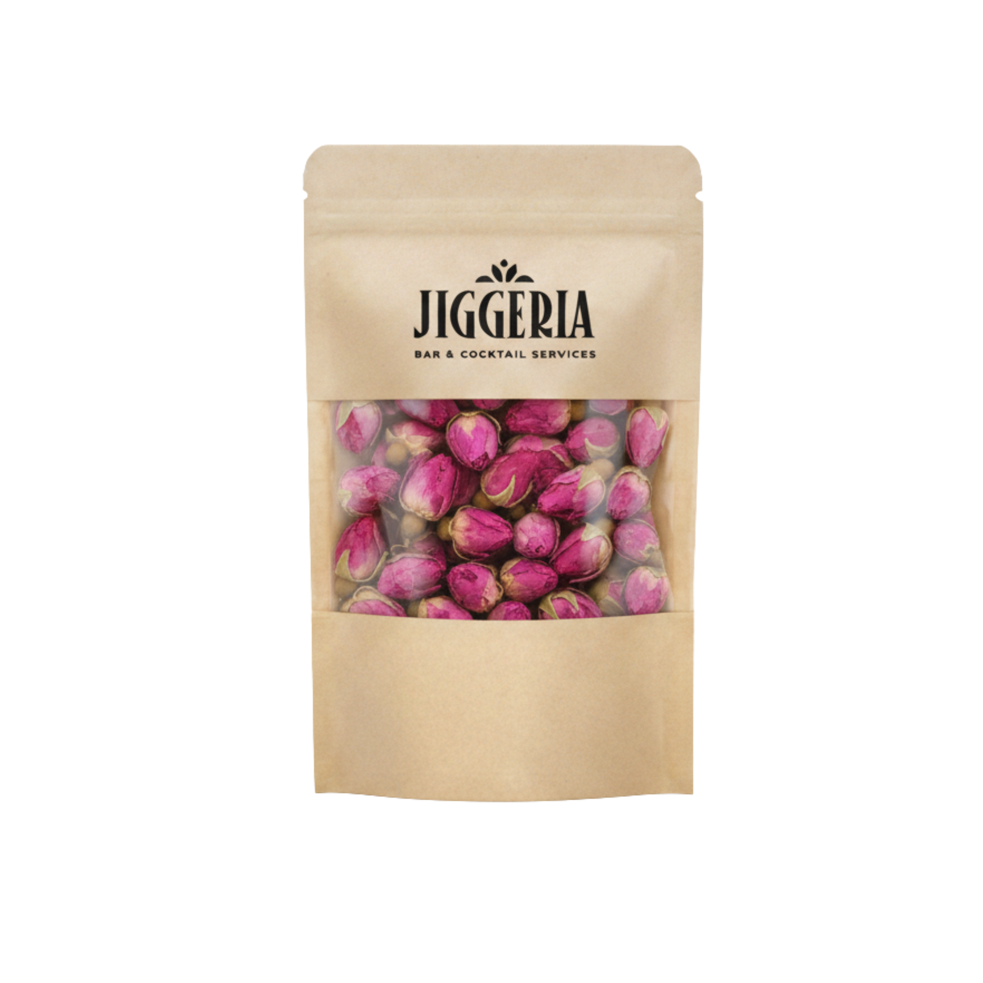 פקעות ורדים יבשים לעיטור הקוקטיילים, מתאים גם להכנה של סירופ ורדים בייתי.